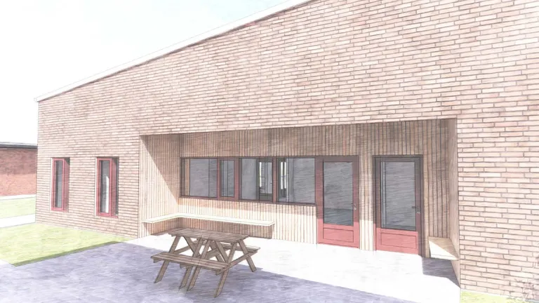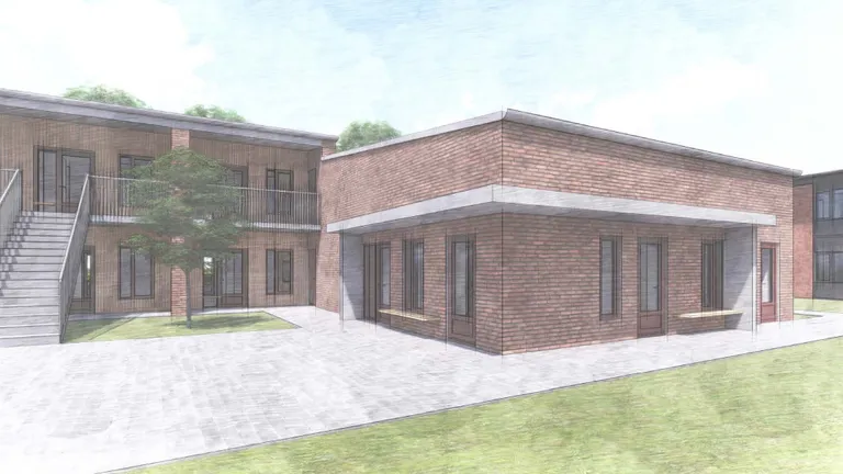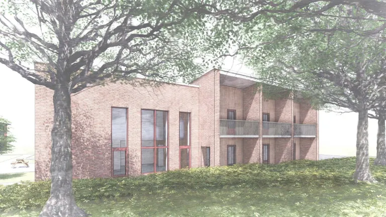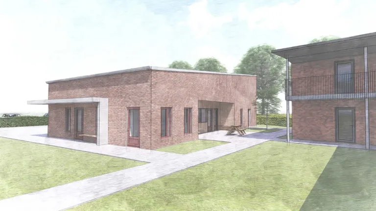 Projektet omfatter opførelsen af ca. 450 m2 ny bebyggelse fordelt på 6 nye midlertidige boliger (§107 boliger efter serviceloven) med tilhørende fælles boligarealer samt serviceareal med personalefaciliteter.