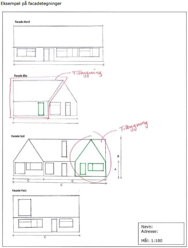 Læs om facadetegninger på Byg og Miljø (bygogmiljoe.dk) Eller Se et eksempel på en facadetegning