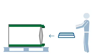 Placer sækken på den en palle så den kan løftes op i lastbilen ved hjælp af løftegafler.