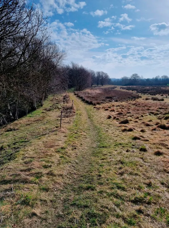 Kort efter åen går I til venstre ad markvej, som følger kanten af skoven.