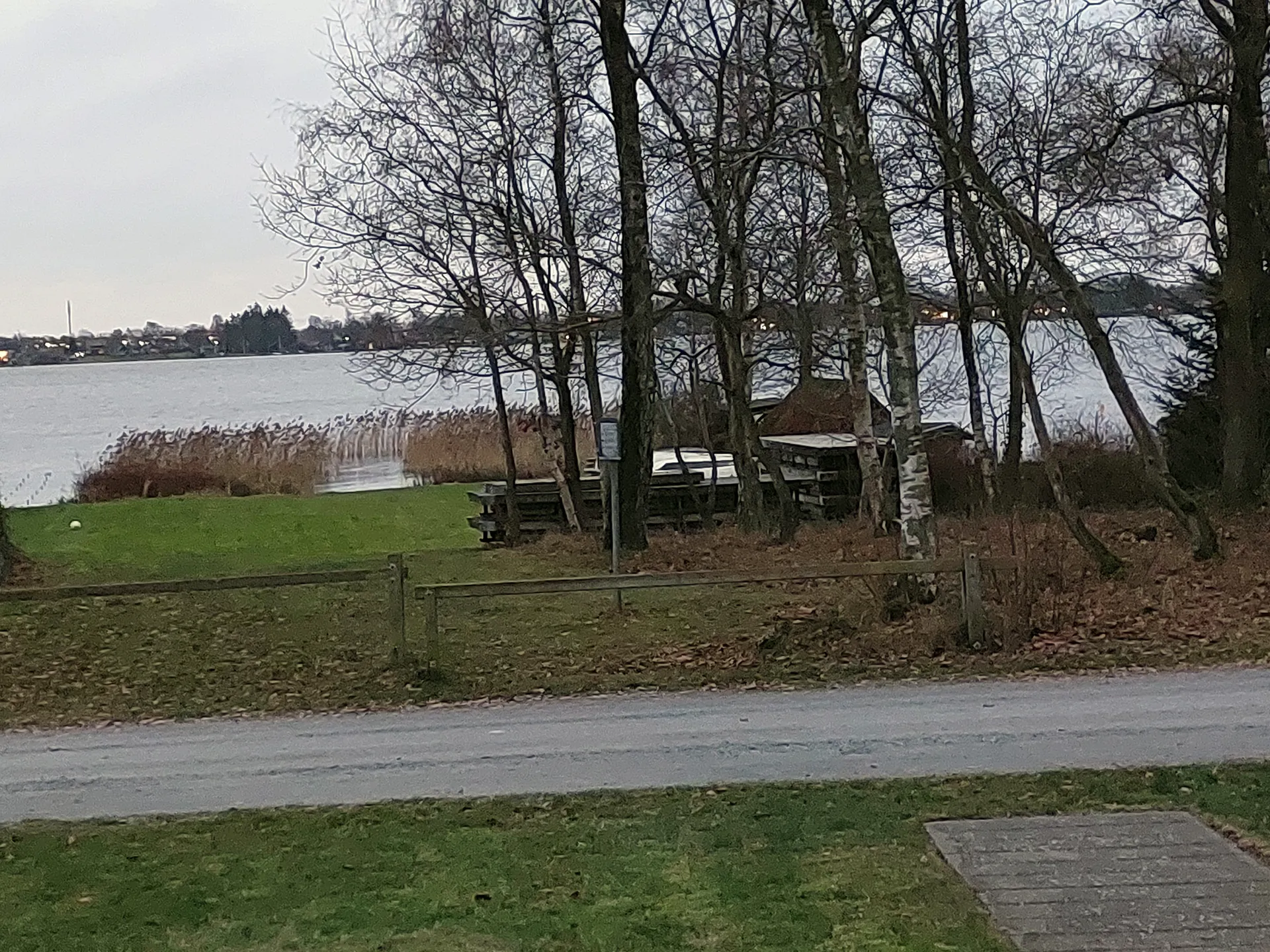 Når man har nået gruset og har gået et stykke, lige inden man skal dreje til venstre ind igennem skoven kan man fortsætte 20 meter længere hen og nyde udsigten over søen.