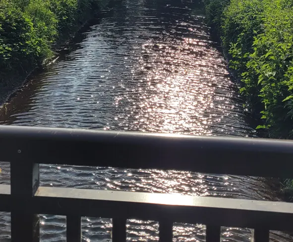 Herfra går turen ned forbi Dagli’ Brugsen og hen over Skjern Å. Ruten fortsætter ned ad Ågade, som førhen ofte blev oversvømmet og transport foregik i gummibåd. Turen går også forbi Ågades legeplads og en tur over endnu en bro over Skjern Å. Nu kommer du til Nederbygaard, hvor der er mulighed for at se hestene boltre sig på markerne og udsigten til Skjern Å er fantastisk. Turen går nu ud af byen og ad grusvejen, som fører til Sdr. Feldings Efterskole, hvor der er smukke åbne marker. Så fortsætter du ned over byens stadion, forbi børnehaven og Det Legende Hus, som Sdr. Felding Hallen hedder i dag. Til slut går ruten forbi kirken, inden du til slut ender ved Dagmar Bio igen.