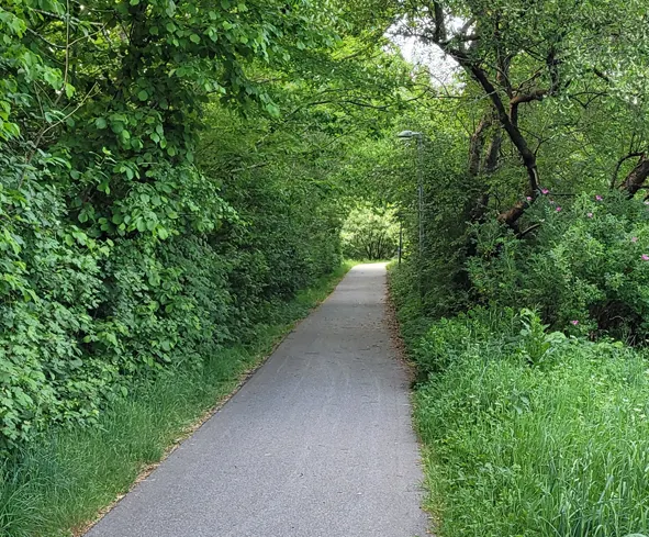 En god gåtur gennem både byen og ud på landet for at få lidt ekstra luft. Ruten er på en blanding af asfalt og grusvej.