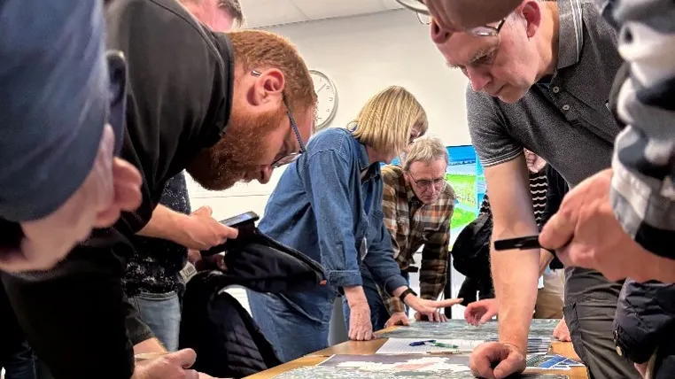 Møderne var præget af god energi – særligt da lodsejerne fik mulighed for at snakke med en udtagningskonsulent, en kommunal projektmedarbejder og deres naboer omkring et kort.