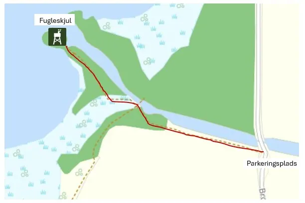 Der er cirka 600 meter ud til fugleskjulet fra parkeringspladsen ved Bassumgårdvej/Brogårdsvej.