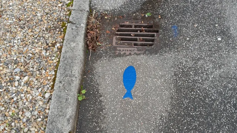 De blå fisk findes ved de riste, som løber direkte ud i naturen.