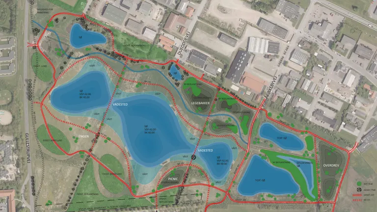 De nye bassiner, rundt om søen, fungerer som en slags filtre for det overfladevand, der skal videre ud i klimasøen. Disse bassiner kan rumme yderligere ca. 18 mio. liter vand.