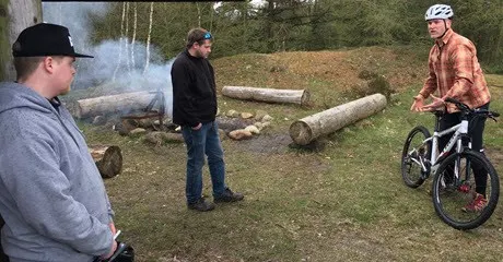 Michael underviser i cykelteknikker - hvordan virker bremser og gear, og hvordan udnyttes vægtbalancen på cyklen bedst.