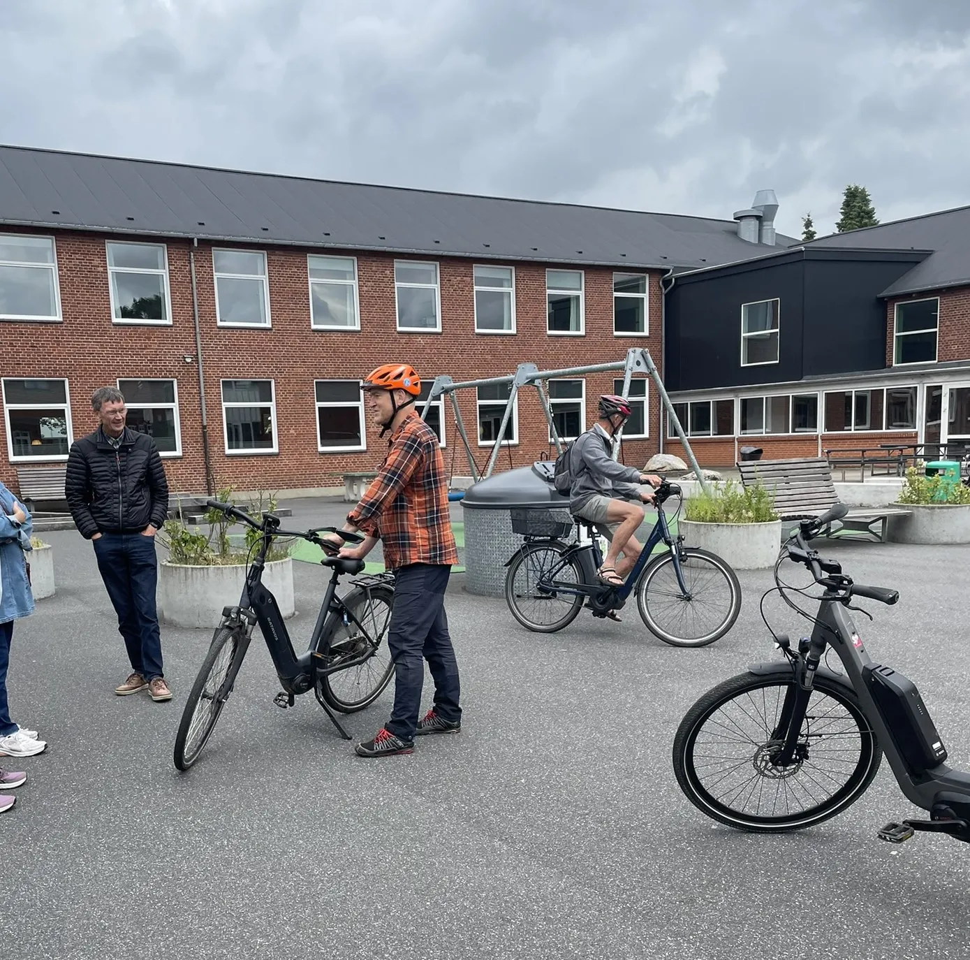 Dansk Skolecykling og Herning Cykler har afholdt endnu et vellykket el-cykel kursus fredag 4. juli 2025. Denne gang var vi budt indenfor på Kastaniegården i Aulum og her blev der talt om alt fra bremser, batterier, bagage, fart til meget mere. Efter kaffe og snak blev det tid til at teste cyklerne og til det var skolegården perfekt. Årets kursus var det tredje gratis el-cykelkursus - de to første blev afholdt ved Løvbakke Naturcenter (2023) og i Kibæk (2024).