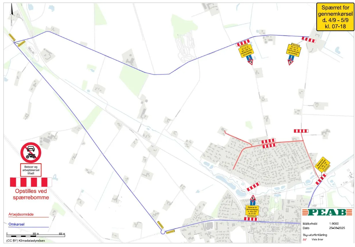 I forbindelse med arbejdet bliver der etableret omkørsel ad Lergravvej – Kirkegade – Danmarksgade.