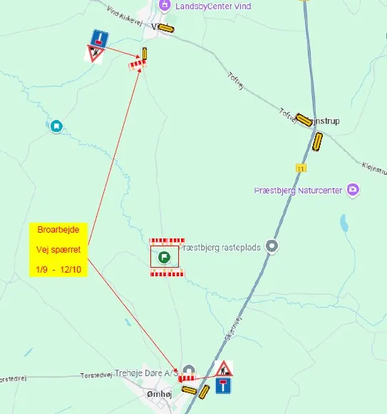 I forbindelse med renovering af en bro på Halkjærvej – mellem Ørnhøj og Vind – så vil vejen blive spærret for gennemkørsel.