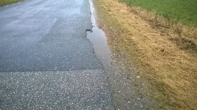 Hul i vejen set på afstand (skadestedet langt fra)